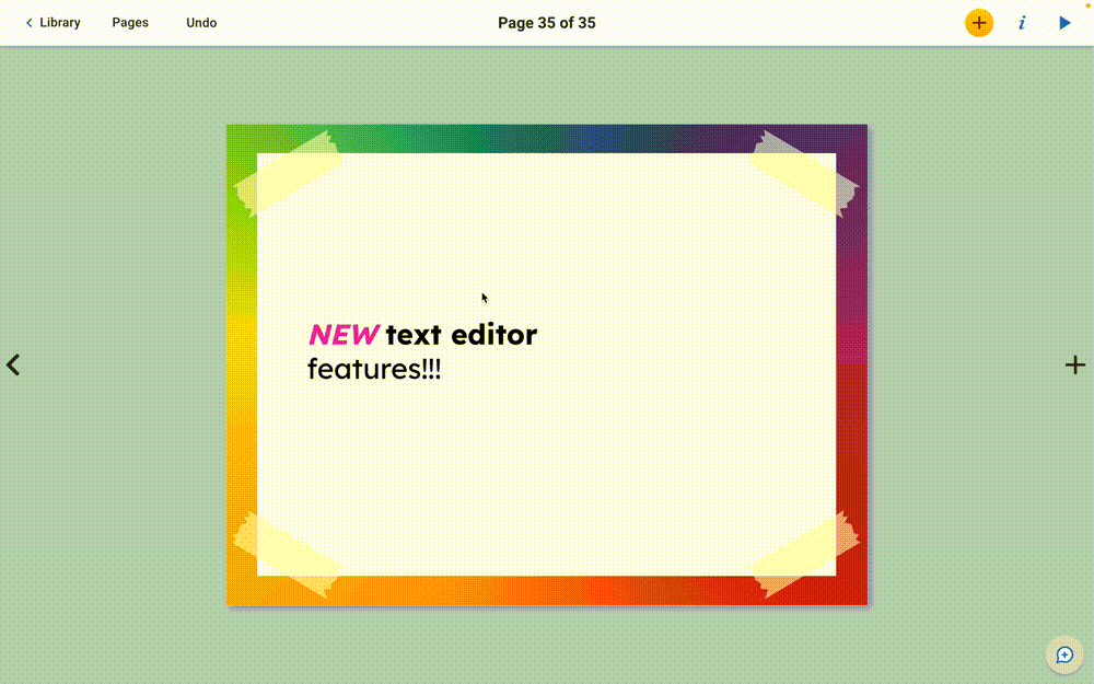 Our latest update allows for more styling options in the text editor, plus special characters to support math and language learning.