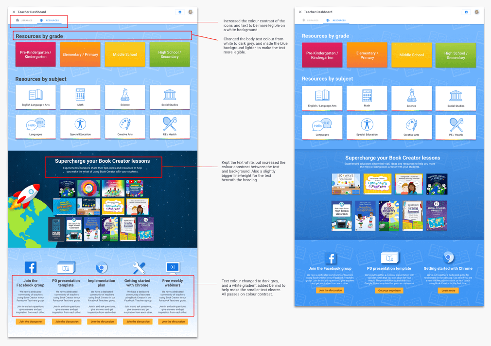 We've made multiple tweaks to our iPad app over the years to make it more accessible. These updates all apply to the web version of Book Creator only.