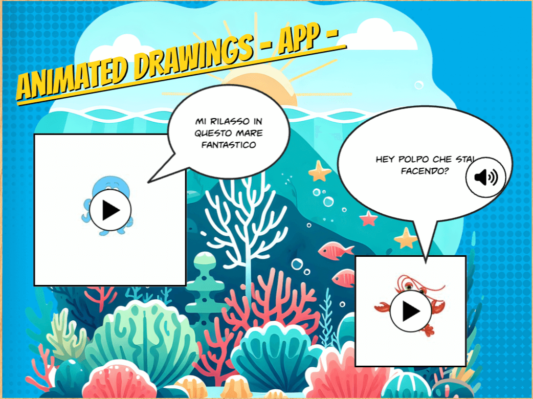 Il lavoro è partito sempre da attività analogiche, come disegni a mano libera e rappresentazioni grafiche. Questi prodotti sono stati successivamente digitalizzati, animati o arricchiti con strumenti di Realtà Aumentata come QUIVER e con strumenti di Intelligenza Artificiale Generativa, mantenendo viva la dimensione espressiva e artistica in cui gli alunni si sono cimentati e la creatività e la fantasia sono esplosi in classe.